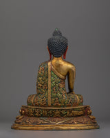 The Shakyamuni Buddha 25cm Nepalese Handmade Statue is 25 cm tall, skillfully carved from finest copper, and gilded in 24K gold. Any area is made more peaceful by this statue, which depicts Shakyamuni Buddha in an enlightened and serene pose. The sculpture gains a timeless elegance from the antique finish, which combines with the vivid gold and acrylic paints to provide a harmonic complement to any setting.