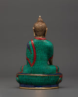 This statue symbolizes Shakyamuni attaining enlightenment under the Bodhi tree while seated in a profound state of meditation with the earth-touching Bhumisparsha mudra. The coral highlights represent energy and inner power, while the turquoise inlay represents healing, peace, and spiritual protection. This monument is a significant, beautiful addition that encourages and inspires, no matter whether you practice Buddhism or are looking for serenity through mindfulness and meditation.