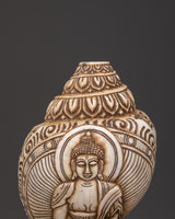 Shakyamuni Buddha Carved Conch | Handcrafted Tibetan Buddhist Ritual Object