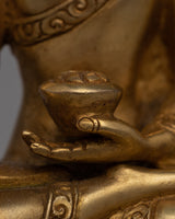 Savor the holy presence of the Shakyamuni Buddha Copper Statue, which was carefully constructed to have both spiritual meaning and a timeless elegance. This statue, which is handcrafted on a copper body and lavishly plated in 24k gold, exudes serenity and holiness. Standing 16cm tall, it is a representation of inner serenity and enlightenment, beckoning you to set out on a path of self-exploration and spiritual awakening.