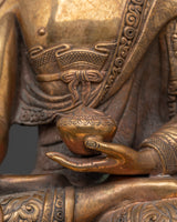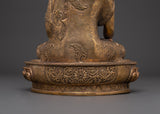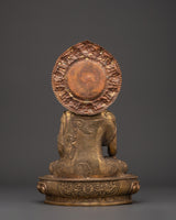 A radiant brass halo surrounds his head, representing his spiritual illumination and divine wisdom. The traditional craftsmanship and fine detailing reflect the artistic heritage of the Himalayan region, where such statues are revered not only for their beauty but also for their spiritual potency. This sculpture serves as a focal point for mindfulness, dharma contemplation, and inner peace.