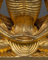 The Shakyamuni Buddha Fasting Statue is a masterfully created representation of one of Buddhism's most admired deities, made of copper and plated with electro gold. Standing 9 cm tall and 5.5 cm wide, this stunning statue weighs 0.17 kilogram and is ideal for displaying on altars, desks, or in meditation settings. The careful design of the statue highlights the Buddha's peace appearance, showing his vast wisdom and spiritual depth. The electro gold plating not only improves the visual attractiveness, but it also represents the purity and enlightenment connected with Shakyamuni Buddha's teachings, lending an air of elegance and divinity to any situation.