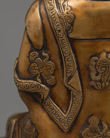 The Shakyamuni Buddha Figure is meticulously handcrafted on a brass body, showcasing the craftsmanship and devotion of the artisans. The statue portrays the revered Shakyamuni Buddha, seated in a meditative posture on a lotus base. This iconic depiction represents the enlightened state of the Buddha and serves as a symbol of peace, serenity, and spiritual awakening. The use of brass adds a touch of elegance and durability to the statue, while the attention to detail brings out the serene expression and compassionate presence of the Buddha. This handcrafted masterpiece serves as a powerful reminder of the teachings and wisdom of Shakyamuni Buddha, inspiring peace and tranquility in any space it adorns.