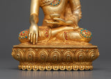 Shakyamuni Buddha for Dharma statue is a reflection of peace and enlightenment, skillfully carved from copper and embellished with 24K gold gilding and delicate acrylic paintings. This artwork, enhanced with gemstones, exhibits Patan, Nepal's outstanding craftsmanship while bringing the Buddha's pure aura into your room.