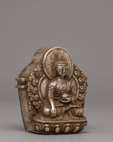 Shakyamuni Buddha Ghau Box in Silver | Sacred Buddhist Prayer Box
