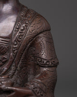 Our Shakyamuni Buddha Handmade Statue presents dimensions of 15.5cm in height and 10.5cm in width, weighing 0.71kg. Crafted from oxidized copper, enhancing both aesthetic depth and symbolic resonance. The oxidation process references the Buddha's transcendence of worldly impermanence while providing a protective surface layer. The proportions adhere to classical iconometric principles, particularly in the earth-touching mudra posture that signifies the historical Buddha's moment of enlightenment. An exemplary devotional object that balances sculptural integrity with doctrinal accuracy for serious practitioners.
