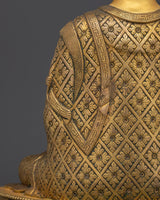 Introducing our Shakyamuni Buddha Handwork Antique Touch statue, which was skillfully made in Patan, Nepal. Crafted from fine copper and adorned with 24K gold, this amazing item epitomizes the illustrious legacy of Nepalese artistry. The antique finish adds a timeless, spiritual depth, and every detail, from Shakyamuni Buddha's placid look to the elaborate robe patterns, showcases extraordinary artisan ability. The Buddha is shown in a serene contemplative pose.