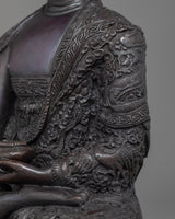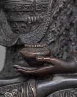 Oxidized Copper Handcrafted Dharma Teacher Shakyamuni Buddha in Bhumisparsha Mudra | Religious Decor