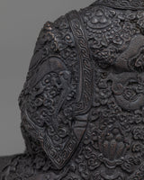 This statue of Shakyamuni Buddha portrays his enlightened state, with his right hand extended in bhumisparsha mudra, the gesture of calling the Earth to witness his moment of enlightenment, and his left hand resting in dhyana mudra upon his lap, indicating his unbroken inner serene. This statue is an amazing focal point for meditation rooms or sacred shrines, inviting mindfulness, compassion, and inner calm into your life while preserving the Enlightened One's teachings.