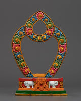 Shakyamuni Buddha, the enlightened one, is the venerated figure central to Buddhism. His teachings lead practitioners down the road of compassion, awareness, and enlightenment. Seated on a throne, he represents the Buddha's elevated role as a teacher and defender of the Dharma, providing calm and spiritual direction to those seeking it.