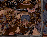 The rich saturated hues of brown, yellow, white, blue, and red are finished with an ombre’ technique. The rich use of 24 karat gold especially in the robes of the Buddha and his attendants adds a glorious radiating feature to this elegant art piece.