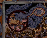 -Rotate thangkas between display and storage on a regular basis, two to four times a year, to reduce the amount of exposure to light. Keep away from sunlight and humidity.