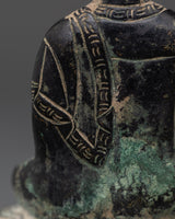 Each Shakyamuni Buddha statue is carefully handcrafted, with intricate details that represent the wisdom and compassion of the Buddha. Made from oxidized copper, this statue embodies strength and spiritual significance. The Buddha's meditation posture serves as a reminder to cultivate mindfulness and inner peace. Whether displayed on a meditation table, home altar, or as part of your collection, this statue serves as a constant source of inspiration, helping to deepen your spiritual practice.