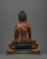 Introducing our Shakyamuni Buddha Reddish Colored Statue, skillfully crafted in Patan, by Nepali artisans into a fascinating depiction of the historical Buddha. This statue, which is 37 cm (14.6 inches) tall with a base that is 29 cm (11.4 inches) wide, depicts Shakyamuni Buddha in an enlightened and calm pose, personifying the very essence of peace and spiritual knowledge.