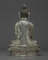 The Shakyamuni statue is a stunning work of art, crafted with a copper body and adorned with silver plating. The deity is depicted sitting on a beautiful lotus base, exuding a sense of serenity and peace. This statue represents the Buddha, also known as Shakyamuni, who is revered as the founder of Buddhism. The details of the statue are intricately designed, capturing the essence of the deity's teachings and wisdom.