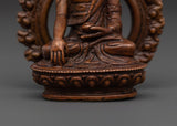 Whether displayed at a personal shrine, yoga studio altar, or meditation space, this Shakyamuni Buddha statue continuously reminds us of awareness and the path to nirvana. The copper finish gives the sculpture an antique aspect that echoes traditional Himalayan craftsmanship. Ideal for Dharma practitioners, Buddhist collectors, and meditation enthusiasts, this piece invites spiritual focus and improves the energy of any area with its symbolic richness and meditative presence.