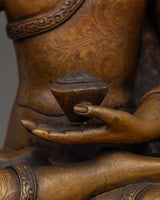 This handmade Buddhist statue is more than simply an ornament; it is a spiritual tool that can help create a peaceful, serene, and balanced environment in your house. This Shakyamuni Buddha is a continuous reminder of the power of mindfulness and inner tranquility, whether displayed in a meditation room, altar, or spiritual nook. The copper finish gives a brilliant, earthy tone, making it a standout feature in any area. This statue is ideal for individuals wishing to deepen their meditative practice or anybody drawn to Buddha's teachings. It combines visual beauty with spiritual meaning. The complex symbolism of the lotus, offering bowl, and meditation promotes spiritual development and a connection to inner wisdom.