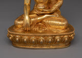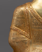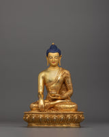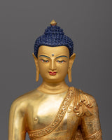 Shakyamuni Buddha Statue Mindfulness Decor, hand-sculpted by a skilled craftsman, symbolizes peace and simplicity. It has traditional Himalayan craftsmanship that has been passed down through generations of Nepali artisans and is gilded in 24K gold. The serene and majestic shape of this Gautam Buddha sculpture symbolizes the area's enduring beauty.