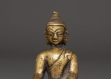 This magnificent Shakyamuni Buddha Statue with Throne is an exceptional work of craftsmanship and spiritual significance. The statue measures 10 cm in height and 7.5 cm in width, weighing 0.28 kilograms. The brass figure, which is gold-plated, is finely crafted and rests on a copper throne with a beautifully carved wood base, enhancing both its visual and spiritual presence. The throne, standing 24 cm tall and 18 cm wide, represents regal tranquility, making it a stunning focal point for any altar, meditation space, or sacred room.