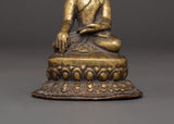 Shakyamuni Buddha, the historical Buddha, embodies enlightenment, compassion, and the path to liberation. In a serene sitting position, his right hand touches the earth in the Bhumisparsha Mudra, signifying his triumph over negativity and the achievement of enlightenment beneath the Bodhi tree. The throne is adorned with mythological lion patterns and fortunate symbols, representing the Buddha's royal ancestry and spiritual authority. The intricate designs and religious themes showcase the skill and dedication of Himalayan craftsmen, elevating it from a mere decorative piece to a profound spiritual symbol.