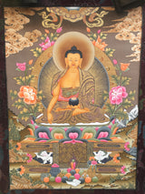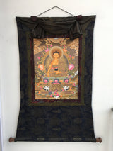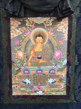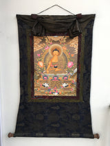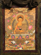 Shakyamuni Buddha Thangka Mounted on Brocade | Buddhist Hand Painted Art