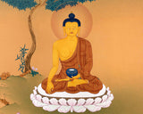This Tibetan Thangka of Shakyamuni Buddha can be your perfect thangka. To take and carry along where ever you are traveling. The color play in the thangka is harmoniously balanced to create soothing pleasure while visualizing it.