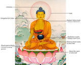 Shakyamuni Buddha is the historical Buddha, the originator of Buddhist philosophy, and is commonly referred to as "the Buddha." In the Buddhist religion, each "Kalpa" (a Buddhist eon) is considered to have its own Buddha, whose teachings gradually fade until the next Buddha arrives. He is believed to have lived around 420 BC and spent most of his time preaching the teachings of Dharma. The Life of Buddha Thangka depicts his life in detail. He is regarded as a role model, mentor, and inspiration. The "dharma," or spiritual belief, and the "sanga," or Buddhist community, are said to secure his presence on Earth.