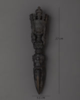 This Saligram Phurba is more than just a ceremonial instrument; it is a symbolic and energetic weapon for dispelling negativity, breaking through illusions, and destroying internal obstructions. The dagger weighs 0.54kg and is perfect for ceremonial use, altar display, or focused meditation. The triple-bladed shape depicts the unity of body, speech, and mind, which are all fundamental principles in Vajrayana practice, and it channels transformational spiritual power via purpose and devotion.