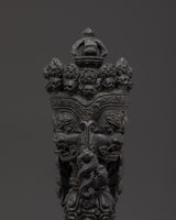 Harness divine energy with the Shaligram Phurba Dagger, a treasured tantric ritual implement utilized in Vajrayana Buddhist and Hindu ceremonies. This three-sided blade, 27 cm tall and 5.5 cm wide, is beautifully carved from saligram, a rare and spiritually powerful fossil stone found only in the Gandaki River region of Nepal. Saligram is revered in both Hinduism and Buddhism for its powerful spiritual force and is seen as a manifestation of Lord Vishnu.