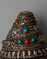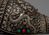 Savor the breathtaking beauty of our Shankh Decoration, which is expertly created from white metal and features a detailed Norbu carving. This masterwork's every detail radiates elegance and spiritual grace, bringing a hint of celestial brilliance to any hallowed place or ceremonial context.