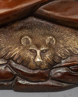The Shiva statue is an exquisite and remarkable piece of art that showcases the beauty and artistry of ancient Indian culture. In this statue, Shiva is depicted sitting upon a lion's skin, with his right hand in abhaya mudra, a gesture of protection and reassurance, while his left-hand rests on his left knee. Behind him stands his sacred trident, a powerful symbol of his power and authority. The statue's intricate and detailed design captures the essence of Shiva's divine presence, highlighting his grace, strength, and beauty. The lion's skin on which he sits symbolizes his strength and his power to conquer all that is negative and impure. Shiva's right-hand gesture represents his desire to protect and guide his devotees on the path to enlightenment, while his left hand resting on his knee signifies his calm and serene nature. The trident symbolizes the three states of consciousness and the three Gunas that are present in all creation.