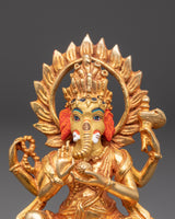 Perfect for placement in home temples, office desks, or meditation corners, the statue serves as a constant reminder of harmony, spiritual protection, and the power of positive transformation. Whether used during puja rituals or as a focal point for meditation, it enhances spiritual practices and aligns with Vastu principles to invite prosperity and balance. As a thoughtful gift for special occasions or a meaningful addition to your own sacred decor, this Ganesh idol symbolizes wealth, wisdom, and success, making it an essential piece for devotees seeking divine energy. Beyond its artistic beauty and intricate craftsmanship, the copper gold-plated statue carries deep spiritual significance, elevating the atmosphere of any room with its auspicious presence. Embrace the blessings of Shree Ganesh with this elegant statue, an embodiment of divine guidance and abundance that supports your journey toward fulfillment and prosperity.