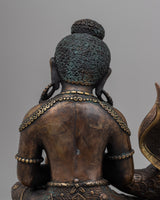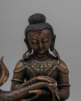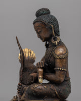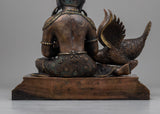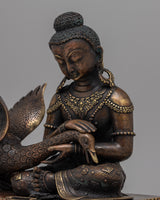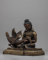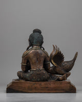 With great care and regard, the Siddhartha Gautam Buddha with Swan statue depicts a moving moment in the Buddha's life. This hand-crafted brass statue, which represents empathy and compassion, shows Siddhartha Gautam gently ministering to an injured swan. The Buddha's gesture symbolizes the essence of loving-kindness and caring for all sentient beings since he is the incarnation of enlightenment and compassion.