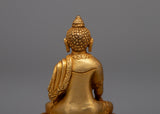 In this statue art, the right hand of Shakyamuni Buddha extends down to touch the ground. This gesture marks the time he summoned the earth to witness his transcendence of the realms of Mara, the supreme God of the world (samsara), who had attempted to draw his attention away from his meditation. As a result of Shakyamuni's achievement of Buddhahood, the earth rocked and shook. Shakyamuni's left hand rests on his lap and he holds his alms bowl meditatively.