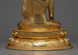 The statue is masterfully carved from copper and gilded with a dazzling layer of 24K gold. The gold and acrylic paintings highlight the depth and intricacy of Shakyamuni Buddha's meditation posture and serene expression. This statue not only captures the Buddha's spiritual majesty, but also lends a sense of elegance and regard to any room, whether it's a home shrine, meditation area, or a place of peaceful reflection.