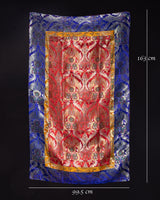 This exquisite silk tablecloth features stunning red and blue brocade patterns, showcasing intricate floral motifs that shimmer with elegance. Traditionally used in Tibetan households and spiritual settings, this cloth brings a refined touch to your home, meditation space, or shrine. Its vibrant colors and rich texture make it an eye-catching centerpiece for any sacred or decorative arrangement.