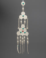 Presenting the exquisite accessory, the handcrafted Silver Plated Challa Waist is made carefully and precisely. This waist ornament with a bronze foundation and silver plating symbolizes sophistication and elegance. Its 34 cm length gives elegance and charm to any outfit, especially when paired with a saree.