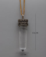 Enjoy the elegance and skill of this exquisitely crafted sterling silver pendant with a natural crystal stone. This pendant, carefully handmade by talented artisans, is the perfect example of the combination of classic style with deep spiritual meaning. The crystal emanates clarity and good energy, and the sterling silver setting offers a strong and bright backdrop.