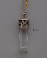 The pendant, which has been meticulously made by hand, highlights the crystal's inherent clarity and brilliance, which are accented by the shiny sterling silver setting. It elevates any ensemble with its elegant design and timeless charm, making it appropriate for formal occasions as well as daily wear. Our Silver Crystal Pendant is a sophisticated and well-made piece of jewelry that can be worn for its aesthetic appeal or as a symbol of spiritual meaning. It will become a treasured addition to your collection.