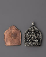 The ghau's distinctive charm is further enhanced by the copper rear cover, which stands out sharply against the silver body and adds to the piece's overall visual appeal. Not only does this deliberate material choice highlight the fine craftsmanship, but it also gives the guru a sense of cultural richness and legacy. The Silver Ghau Box, with its Green Tara locket, is a wonderful combination of art and spirituality, and it can be worn as a personal amulet or shown as a decorative piece. It is also a good present for people who appreciate tradition and beauty.