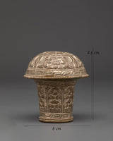 This Silver Plated Brocade Stick Cap showcases exquisite craftsmanship with its detailed copper bodywork accented by elegant silver-plated highlights. Measuring 8.5cm in height and 8cm in width, it is perfectly sized for spiritual ceremonies or as a distinguished addition to your collection. Beyond its beauty, this cap carries cultural significance, making it a meaningful decoration for your altar or a thoughtful gift for those who value spiritual artistry. Combining artistry and symbolism, this cap enhances any setting with its refined presence and appeal.