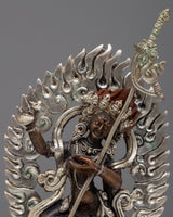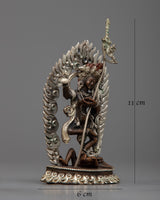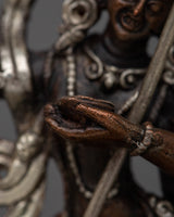 This beautiful statue honors Dorje Phagmo, who is regarded as a symbol of bravery and compassion, with grace and dignity. The deity's transcendent attributes are accentuated by the silver plating, which invites devotees to connect with them and find comfort in her protecting embrace.