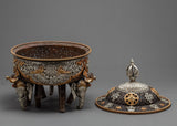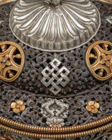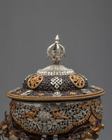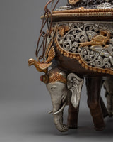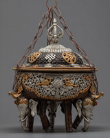 Our silver-plated incense burner is handcrafted copper incense, holding the chain from the inside. The incense is crafted with the knot of eternity, representing the intertwining of wisdom and compassion, the perfection of knowledge, and the elephant interpreting good luck.