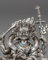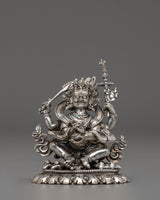 Silver Plated Mahakala Statue | Tibetan Wrathful God Figurine