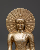 Crafted from a copper body and plated with a shining silver finish, this statue emanates an aura of purity and admiration. The meticulous design of the robe, halo, and tranquil demeanor reflects craftsmanship rooted in Himalayan spiritual culture. Lightweight at 0.39 kg, it is ideal for portable shrines, meditation setups, or as a meaningful gift for seekers on the path.