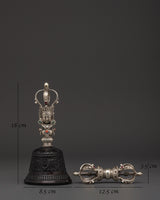Silver-Plated Tibetan Bell and Vajra Set | For Mindfulness, Puja & Spiritual Awakening