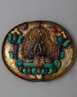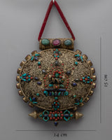 This Ghau box is a potent spiritual tool traditionally used as a portable shrine for holding sacred artifacts, mantras, or miniature deity statues. The Silver Plated Tibetan Ghau Box is a lovely reminder of the spiritual depth and rich cultural legacy of Tibetan Buddhism, whether you decide to use it in your daily practice or exhibit it as a part of your holy space. It is prized by collectors and practitioners alike due to its exquisite craftsmanship and the spiritual importance of its materials.