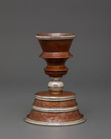 Butter lamps are a vital component of Buddhist offerings, symbolizing the illumination of knowledge and the dispelling of spiritual darkness. Traditionally filled with ghee or oil, these lamps are lit during meditation or religious observances to bring blessings, calm, and clarity. This lamp's exact craftsmanship and original materials make it a spiritual tool as well as a beautiful, sacred item.