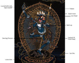 This Simhamukha Dakini thangka is painted with acrylic color and 24k gold. She is a fully enlightened creature whose name means "Lion-Faced Lady." She has gained Buddhahood, the highest level of wisdom and bliss. Her mind is free of distortion and conceptual overlay, flowing in a pure, non-conceptual stream.