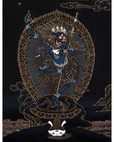 Singhamukha Thangka | Simhamukha | Lion Faced Dakini | Black And Gold Painted Tibetan Art